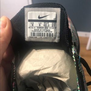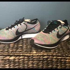 Men’s size 9 Nike Flyknit Racer multi-color 2.0 shoes. ONLY WORN ONCE (see picture for reference), but no box. Very comfortable and stylish shoes.