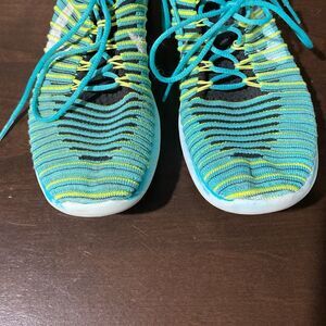 Nike Flyknit Teal Neon Yellow Lightweight Running Shoes Size 6.5