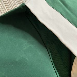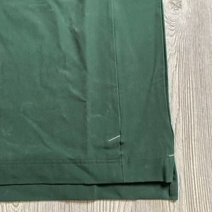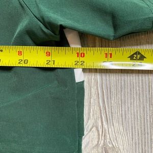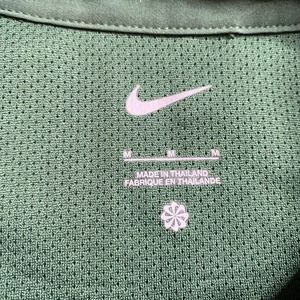 Introducing the Nike Football Coach 1/4 Zip Pullover SS Wind Shirt in size M and green color. This windbreaker style jacket is perfect for any football coach or enthusiast. It features short sleeves, a pullover closure, and is made of a high-quality blended fabric with polyester that ensures maximum comfort during physical activities.