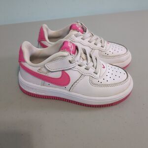Nike Force 1 Low Easy On Toddler Shoes 10c White w/ Laser Fuchsia FN0236-102