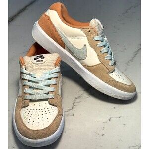 The Nike Force 58 SB Men's Shoes in size 5 feature a low top shaft style and a standard shoe width. These sneakers come in a color combination of ivory, white, and jade ice, with a style code of FN8888-131. Part of the Nike Force product line, these athletic shoes are designed for men and were released in 2023. Made in Vietnam, these sneakers are a stylish and comfortable choice for any casual or athletic outfit.