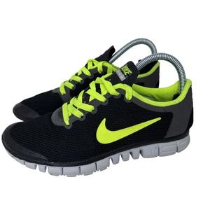 Nike Free 3.0 V2 Running Sneakers 354574-003 Lace Up Low Top Black Green 6.5