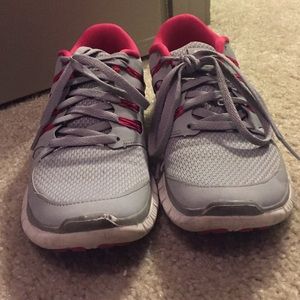 Gently used gray and pink nike free 5.0 sneakers. These are great for running or weight training, i love them I just I have over 10 pairs of nikes and need to downsize my collection! Tons of life left in these!