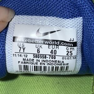 The Nike Free 5.0 (GS) unisex sneakers in size 7 youth are a vibrant combination of yellow and blue colors, making them a stylish choice for active kids. Featuring a lace-up closure and the iconic Nike brand, these athletic shoes are perfect for walking, cross-training, and running. With a neon and colorful theme, these sneakers are designed for both fashion and functionality, making them a great addition to any young athlete's wardrobe. Made in Indonesia, the Nike Free 5.0 sneakers offer both quality and style for active kids on the go.