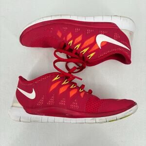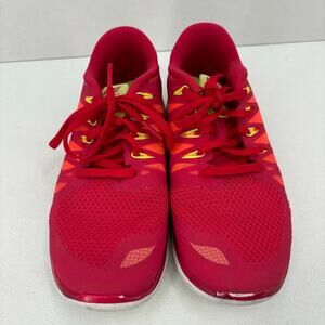 Nike Free 5.0 Running Sneakers Flyknit Athletic Shoe Breathable Red Size 7.5