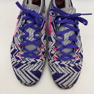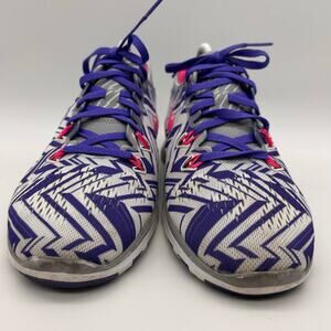Up for sale is a pair of Nike Free 5.0 TR Fit 5 PRT athletic shoes for women in size 9. These sneakers feature a stylish purple and pink colorway with a bold printed design. Lightweight and flexible, they're perfect for running, training, or everyday wear. The breathable mesh upper and Nike Free sole provide comfort and support with every step. Gently used and in great condition with minor signs of wear. Clean, smoke-free home. Fast shipping!