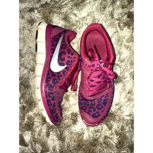 Nike Free 5.0 V4 Leopard Raspberry Red and Purple Sneakers Running Shoes
