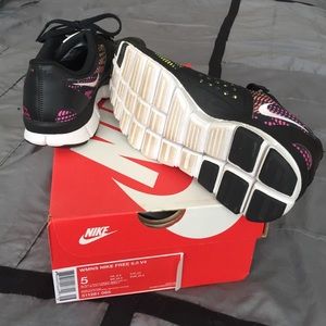 Nikes famous Free Run 5.0 in v4 women's size 5 that has only lightly been worn. No scuffs, stains, rips or tear. Minus some dusty soles, they are in like new condition!