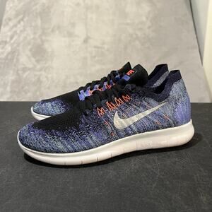 Nike Free RN Flyknit 2017 Shoes Womens Size 8 Black Purple Blue