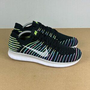 Nike Free RN Flyknit Black Multicolor Athletic Running Shoes Womens 8.5 Low Top