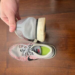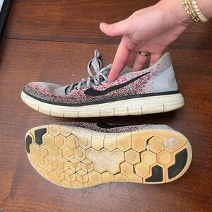 Nike Free RN Mens Gray Red Athletic Sneaker Shoes 12 Flyknit Lace Up Fabric Mesh