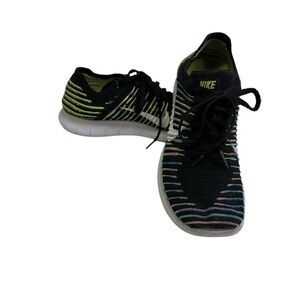 Nike Free Running Knit Black Striped Athletic Sneaker Shoes Size 8.5