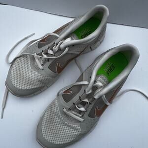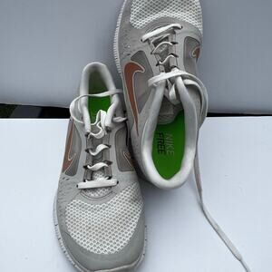 NIKE FREE women’s sneakers size 8. White with rose Nike with logo. Lightweight, nice condition.