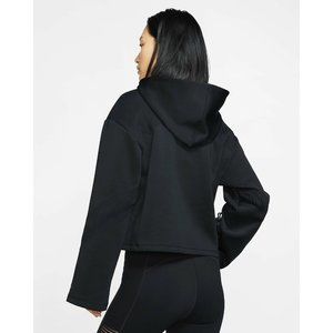 Nike's hoodie is detailed with layered laser-cut panels at the neck and cuffs that mimic fringe. It's made from the brand's breathable, moisture-wicking Dri-FIT in a loose, cropped silhouette and has dropped shoulders and wide sleeves. Team yours with the coordinating leggings when heading to the gym or to run errands.