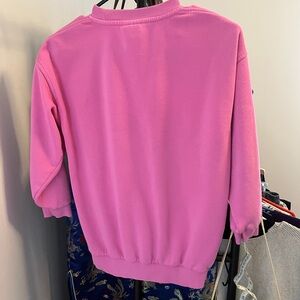 Vibrant fuchsia Nike sweatshirt with embroidered logo. Soft and stylish.
