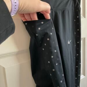 Nike full length black polka dot leggings. These have a pocket on the side as well as a zippered pocket on the back. Drawstring waist.