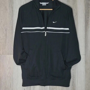 Nike Full Zip Black White Striped Athletic Jacket Mens Size Medium