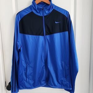 Nike Full Zip-Up Track Jacket Mens Size XL Mock Neck Track Blue Black Polyester