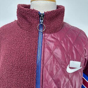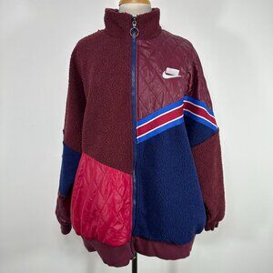 Nike Full-Zip Sherpa Track Jacket Womens Size Large Maroon Blue Sportswear.
