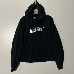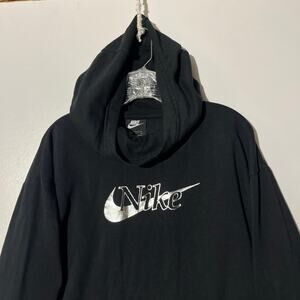 Nike Funnel Neck Mirrored Silver Metallic Logo Print Black Hoodie Womens Size M