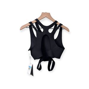 Feel fierce whatever you do in this strappy sports bra. Its sleek, midweight fabric feels supportive in all the right places. With sweat-wicking tech and plenty of cut-outs, you can stay cool and dry whether you're powering through a workout or busting out some moves on the dance floor.