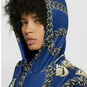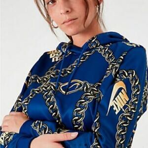 NEW NWOT Nike Pop Art Royal Blue Gold Chain Crop Sweatshirt sz Small. Fantastic royal blue with gold chain pop art, Nike Just Do It icon sweatshirt hoodie in new without tags, brand new condition. Lock down killer, on-trend style in the ultra-comfortable Women's Nike Sportswear Glam Dunk Crop Hoodie. Cropped style, pullover, hoodie, ribbed cuffs at sleeves. Perfect all season hoodie!