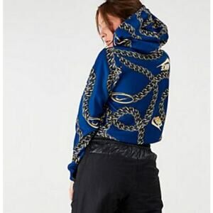 Nike GLAM Dunk Crop Pop Art Blue Gold Chain Sweatshirt Hoodie sz Small NEW