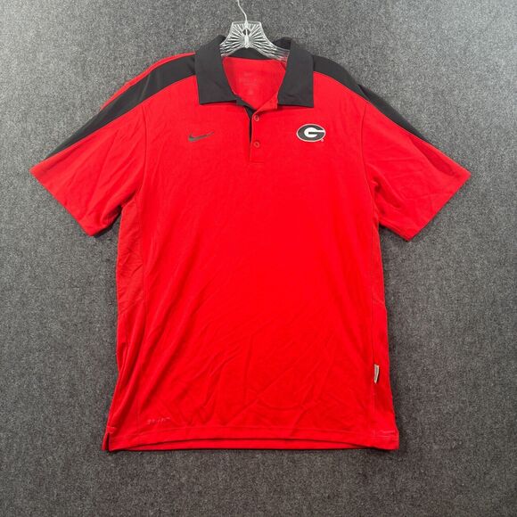 Nike Georgia Bulldogs Polo Shirt Men’s Large Red Gray Dri-Fit Dawgs UGA