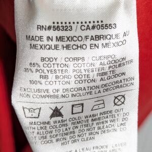 Red Dri-Fit blend (65% cotton, 35% polyester)