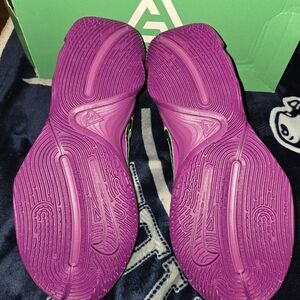 Dynamic magenta shoes with lime details. Sleek design and cushioned sole.