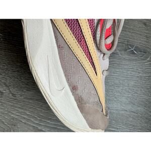 Color/Pattern: Light gray/mixed-tone upper with pink detailing and outsole