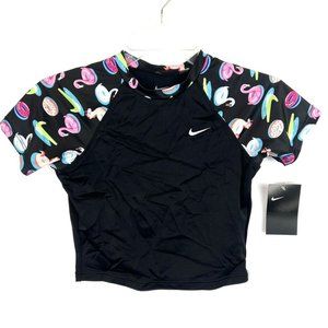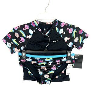 Nike Girl’s Black Short Sleeve Rash Guard Top And Bikini Bottom Swim Set Size XL