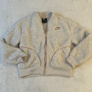Nike Girls Bomber Jacket sz L Nike High Pile Fleece Shine Bomber Jacket Cream