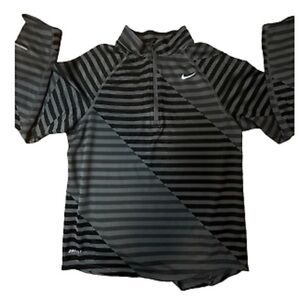 Nike Girls Element Dri-Fit Running Half Zip Shirt Size Grey Striped Size XL EE