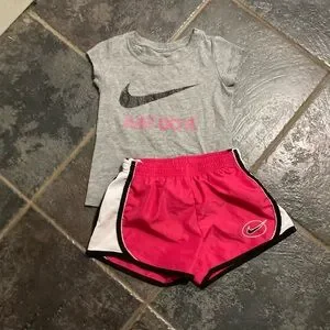 Nike Girls' Grey Logo Tee & Pink Athletic Shorts Set Size 5/6