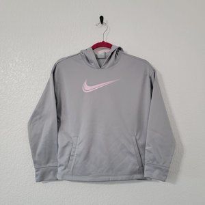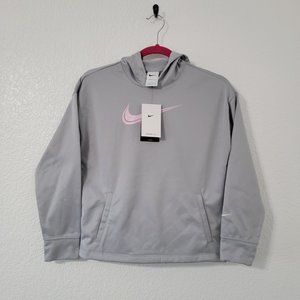 Nike Girls Hoodie Therma-Fit Medium Gray/Pink Thumbhole NWT