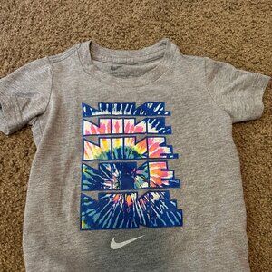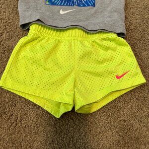 Color - Gray Shirt w/ Tie Dye Graphic & Bright Green Shorts w/ Pink Swoosh