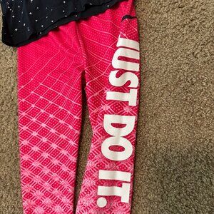 Color - Black Shirt / Pink Leggings w/ Just Do It down the leg