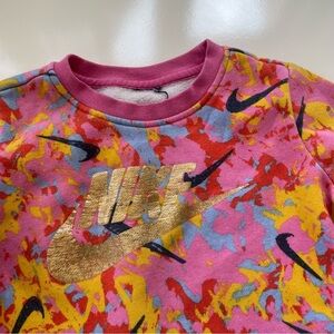 Nike Girls Pink Paint Splattered Nike Swoosh Cropped Sweatshirt Size XS (6/7)
