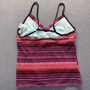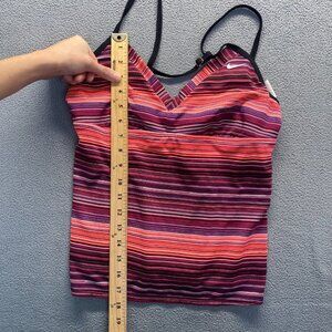Nike Girls Swim Size 12 Tankini Top Strappy Back Pink Purple Stripes Bra