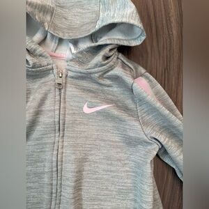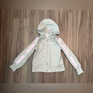 Nike Girls Therma Fit Gray Full Zip Jacket with Pink Stripes size 6X