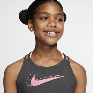Nike Girls' Trophy Training Tank Top Medium Grey with Baby Pink Swoosh