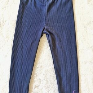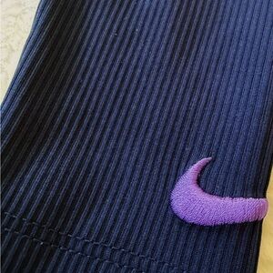 Ribbed blue/purple matching pants. Elastic waist with purple swoosh at bottom of left leg.
