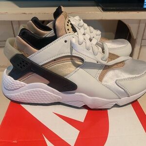 Nike Gold, Black, and White Athletic Huarache sneakers. Size US 7. Worn once. Has minor marks as seen in photos. Let me know if you have any questions