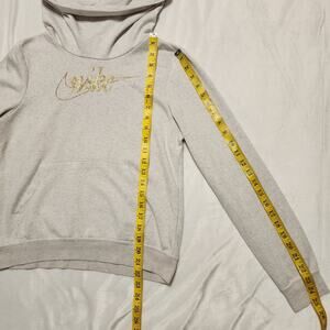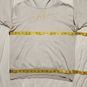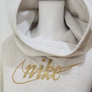 Nike Gold Glitter Swoosh Funnel Neck Hoodie Gray Sweatshirt Front Pocket, XS