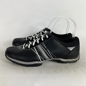 preowned. Elevate your golf game with these Nike Golf Delight cleats, designed for women in US shoe size 8. These lace-up sneakers feature a solid black leather upper with the Nike logo as accents, and a comfortable foam insole for all-day wear. The rubber outsole provides traction and durability, making them suitable for both casual and activewear occasions. With a low-top shoe shaft style and soft spike cleat type, these Nike Golf Delight cleats are perfect for golfers of any skill level. Whether you're hitting the links in the winter, summer, fall, or spring, these shoes will keep you comfortable and stylish. They are not handmade, but they are still a great addition to any golf wardrobe.