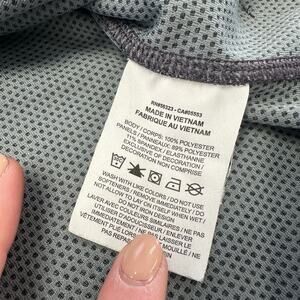 Nike Golf Dri Fit Gray Black Mens L Swoosh Logo Sleeve Quarter Zip Pullover Performance mock neck zip embroidered logo color block swoosh logo activewear pullover lightweight Shirt Sweatshirt performance , stretchy polyester spandex