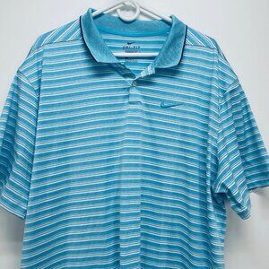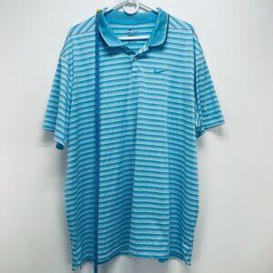 Nike Golf Dri Fit Polo Shirt Size 2XL Men’s Striped Blue Logo Short Sleeve New