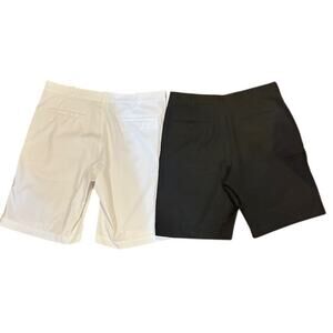 Bundle of two high-performance men’s golf shorts, both size 34 with 10” inseam. Includes one pair of Nike Golf Dri-FIT shorts in white and one pair of PGA Tour shorts in black. Both designed for comfort, mobility, and style on the course.