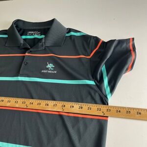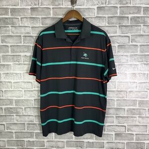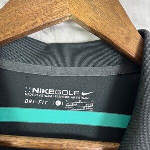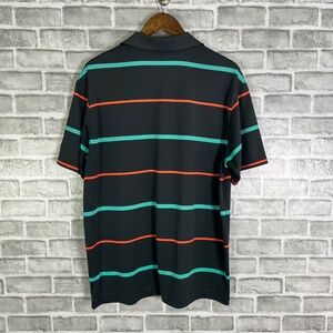 Nike Golf Dri-Fit Charcoal Gray & Teal Striped Performance Golf Polo Mens Large